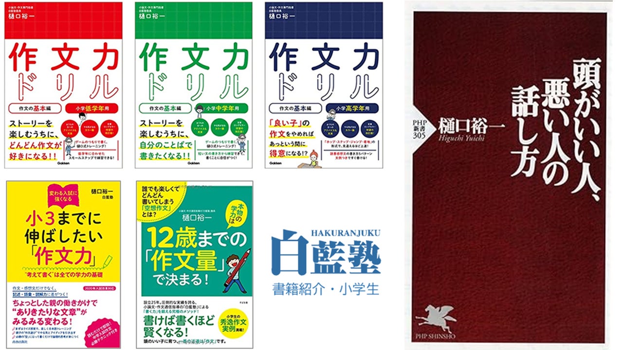 白藍塾は、250万部の大ベストセラー「頭がいい人、悪い人の話し方」(PHP新書)、ロングセラーの人気作文参考書「作文力ドリル」(学研)シリーズの著者樋口裕一が塾長を務めています。プロの作家が考案した指導ノウハウをもとに、本を読むこと、文章を書くことが楽しくなるユニークな読書感想文指導を提供します。