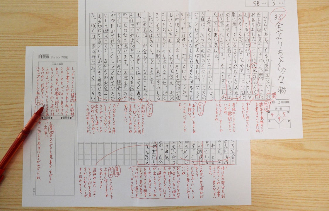 少数精鋭のプロの指導陣が添削指導を担います。当塾による厳しい審査、研修を経て正式採用した講師が担任となり、お子さんの読書感想文を指導します。顔も実力もわからない登録講師に大切なお子さんの指導を委ねることはありません。小学生作文指導の適性を備えた実力講師が、お子さんの良い点をほめながら、きめ細かく、ていねいに、添削指導にあたります。