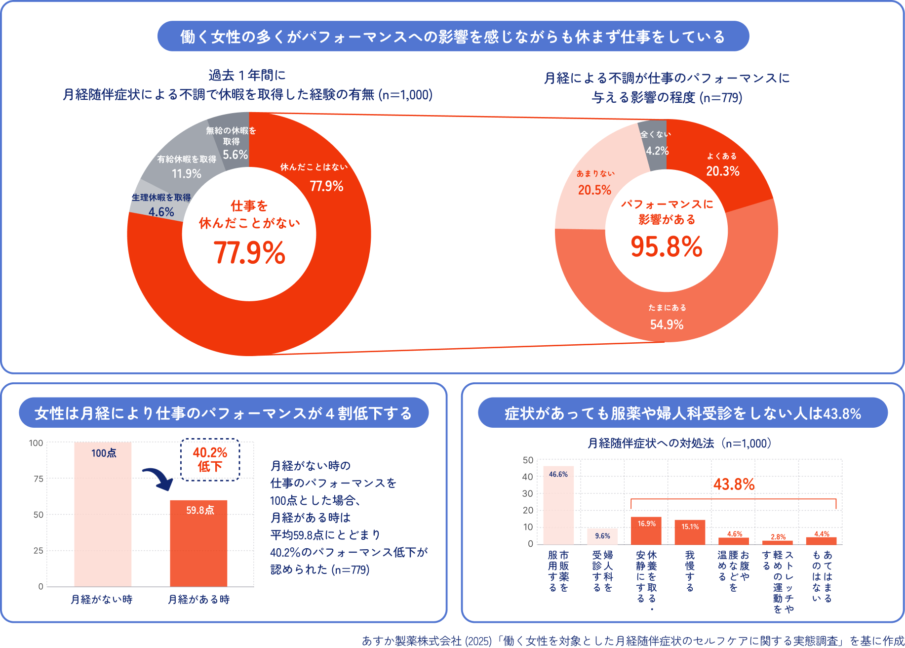 ※1 あすか製薬株式会社 (2025).「働く女性を対象とした月経随伴症状のセルフケアに関する実態調査」. https://www.aska-pharma-hd.co.jp/LinkClick.aspx?fileticket=3HMyU%2FjIgXQ%3D&tabid=199&mid=759