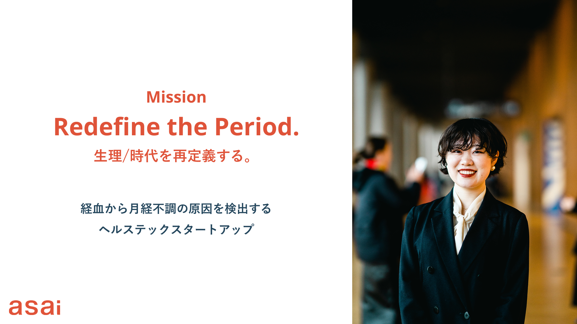 月経不調の原因を検出する経血検査システムの開発を基幹事業とし、すべての女性が生理に悩まされることなく、のびのびと暮らせる社会の実現を目指すスタートアップ(株)asai(本社:東京都港区、代表取締役:浅井しなの)は、2025年11月20日、あすか製薬(株)(本社:東京都港区、代表取締役社長:山口惣大)とともに、体験型生理セミナー「月経ラボ〜月イチの“モヤモヤ”を知る〜」の提供を開始いたしましたので、お知らせします。