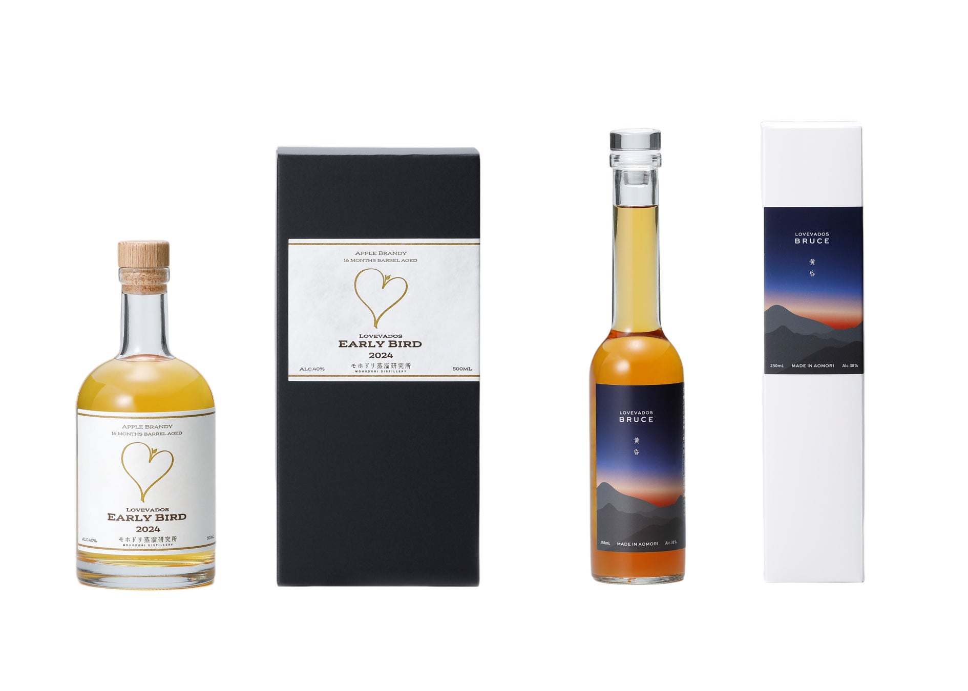蒸溜所設立から4年目を迎えた、有限会社サンアップル醸造ジャパン(本社:青森県つがる市、代表取締役:木村愼一)が、国産クラフトアップルブランデー「LOVEVADOS アップルブランデー EARLY BIRD 2024(ラブヴァドス アーリーバード)」と「LOVEVADOS BRUCE 黄昏(ラブヴァドス ブルース タソガレ)」の2商品を2024年8月1日より一部酒販店、公式ECサイト(https://www.mohodori.shop/)、蒸溜所内直営店にて販売開始いたします。