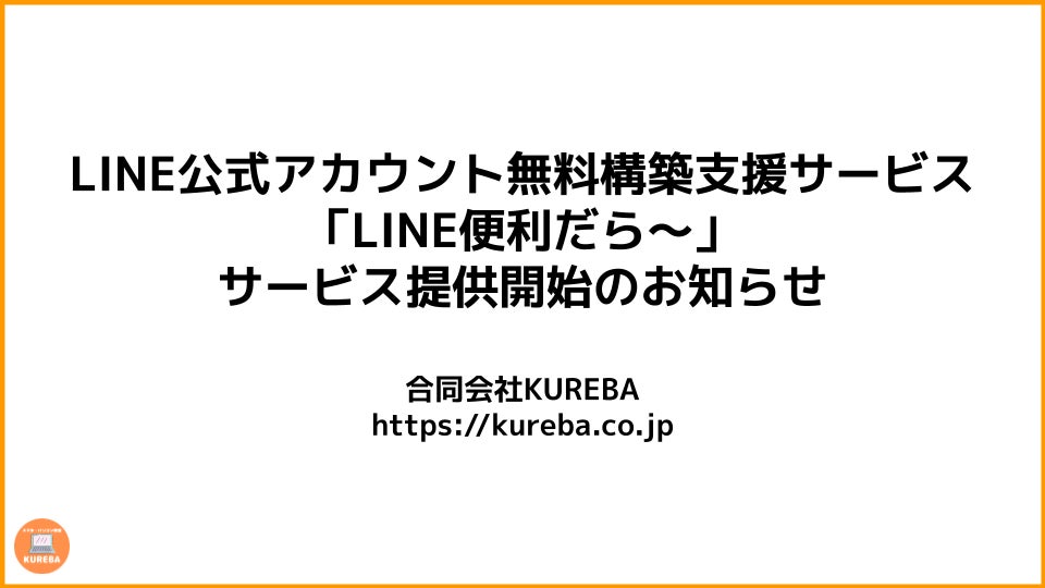LINE公式アカウント無料構築支援サービス「LINE便利だら〜」は、LINE公式アカウントのメリットや魅力を体感していただくため、LINE公式アカウントの構築・運用の知見を持つ合同会社KUREBAが提供するサービスです。