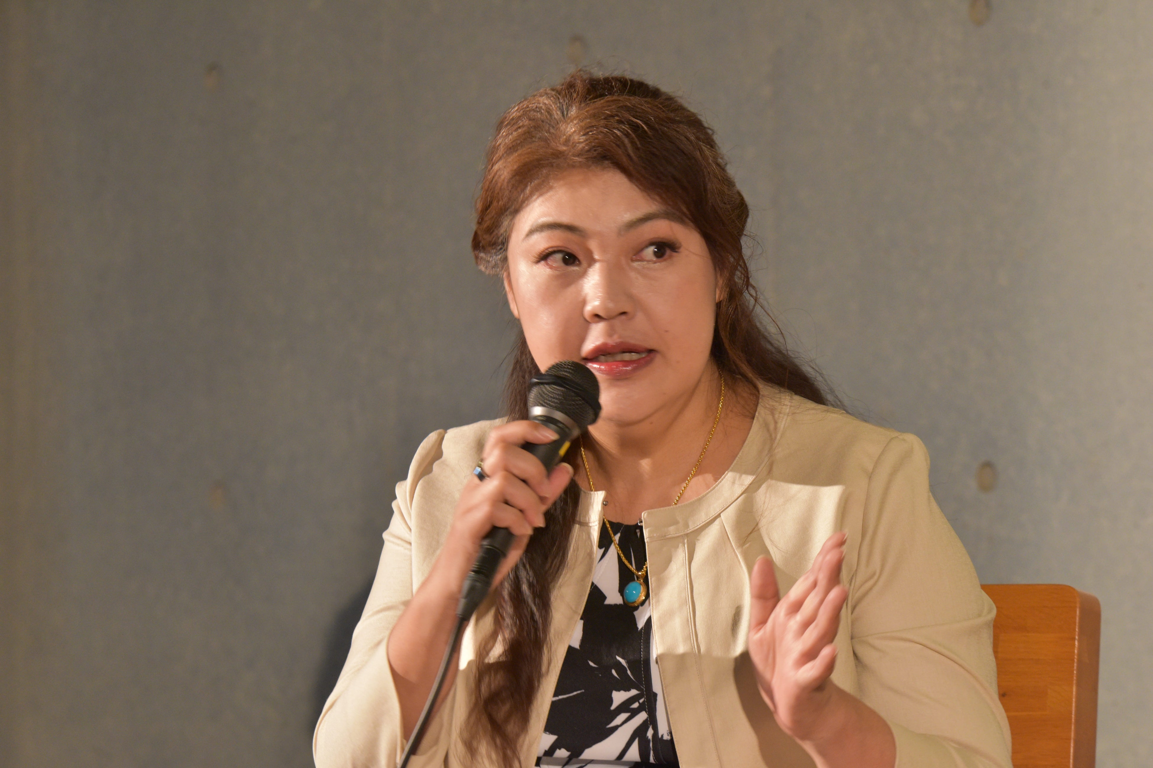 また、武井涼子副学長からは、音楽ビジネスやアートマネジメントの専門家、実務家教員の立場から、新設のグローバル教養学部について説明しました。日本初の共生コミュニケーター専攻など多文化共生社会のキーパーソンとなる人材、インバウンド需要等観光立国に貢献する人材、各国文化に精通し、理論と技能をエンターテインメント業界で活かせる人材など、今後必要とされる人材を輩出する具体的なカリキュラムについて紹介しました。