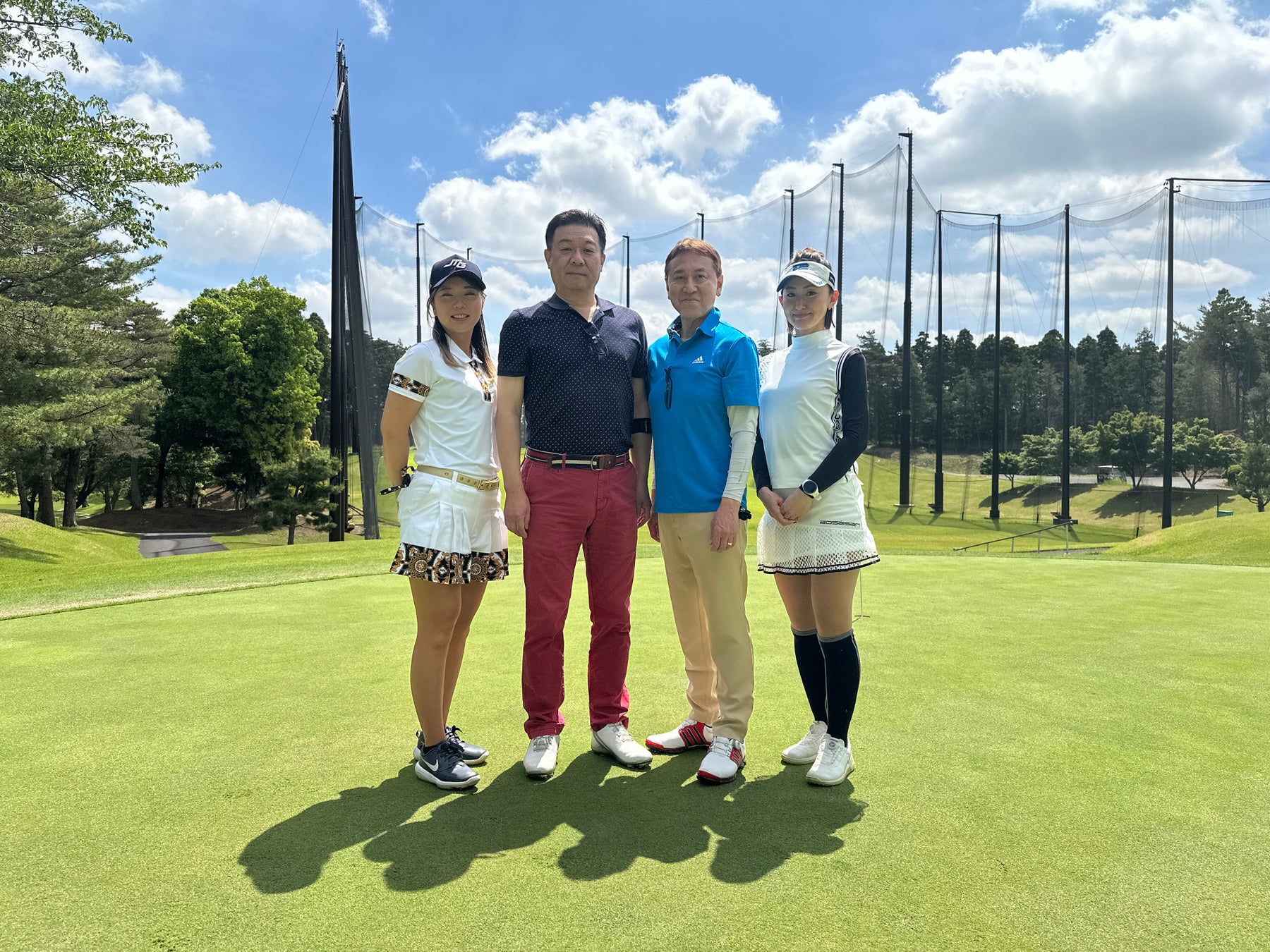 正面左から: 前田 衣里奈プロ(ティーチングプロフェッショナル資格 A級)、株式会社ティースリー代表取締役 黒澤 宏亮、サンミュージックプロダクション代表取締役社長 岡 博之、大谷樹理プロ(全米女子プロゴルフ協会会員)