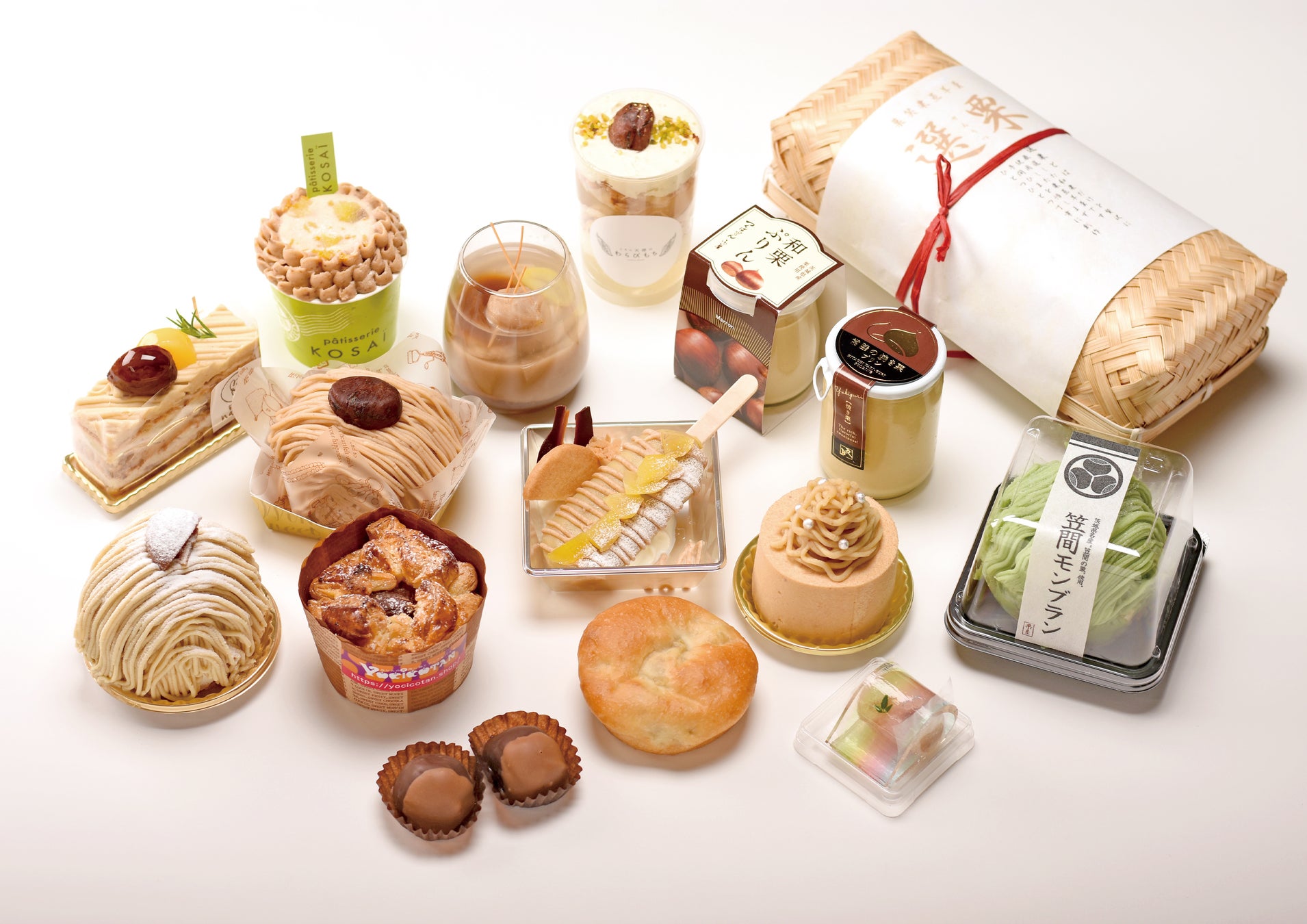 県産食材のPRと、茨城県の魅力発信を目的に、2014年からつづく県産の食材をテーマに県内の和洋菓子店が開発した菓子を、食味やデザイン、独創性などを競うコンテストを開催。今年は、洋菓子11点、和菓子5点を出品。グランプリに選ばれたのは、パティスリーシュールミガワの「マロニエ」と、日立和洋菓子いちかわの「栗羹(くりかん)」。フェア当日グランプリを含め、コンテスト出品作品すべて販売される。