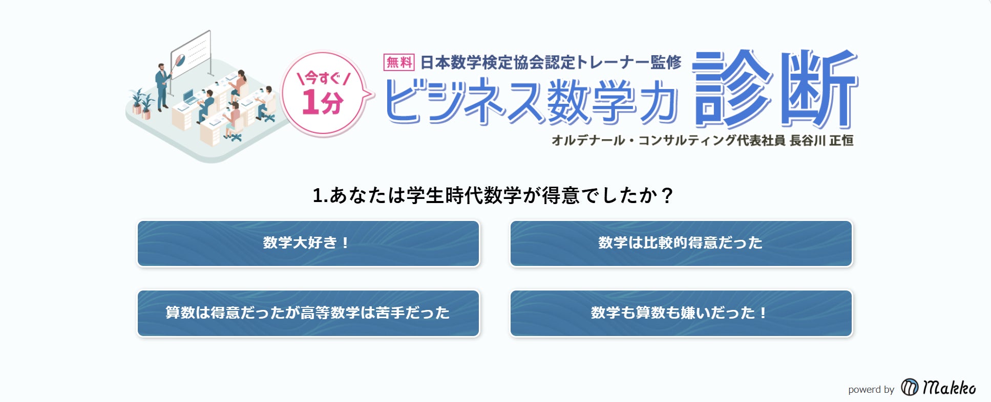 日本数学検定協会認定ビジネス数学トレーナーとしても活躍されており、企業向け研修事業を展開するオルデナール・コンサルティング合同会社様にご導入いただいた事例となります。