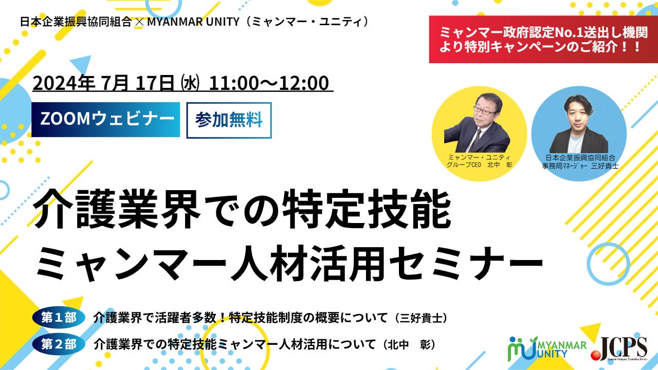 【日本企業振興協同組合✕ミャンマー・ユニティ】介護業界での特定技能ミャンマー人材活用セミナー開催決定!!