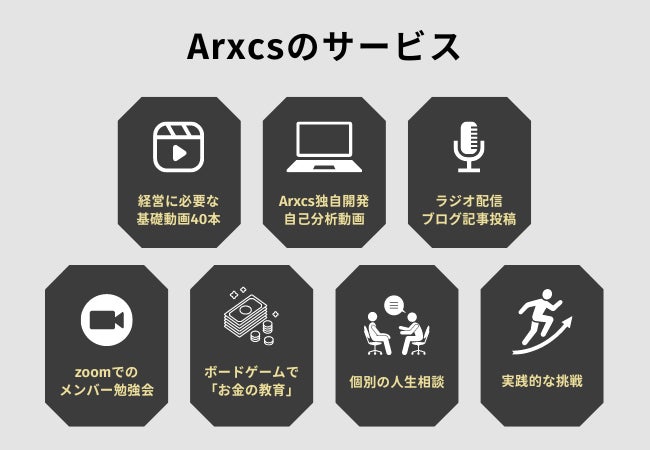「Arxcs」は、体育会学生が自分自身の本質と向き合い、人生を設計し、そのために必要なビジネススキルを身につけるためのサポートをする、月額1万円の会員制オンラインコミュニティです。