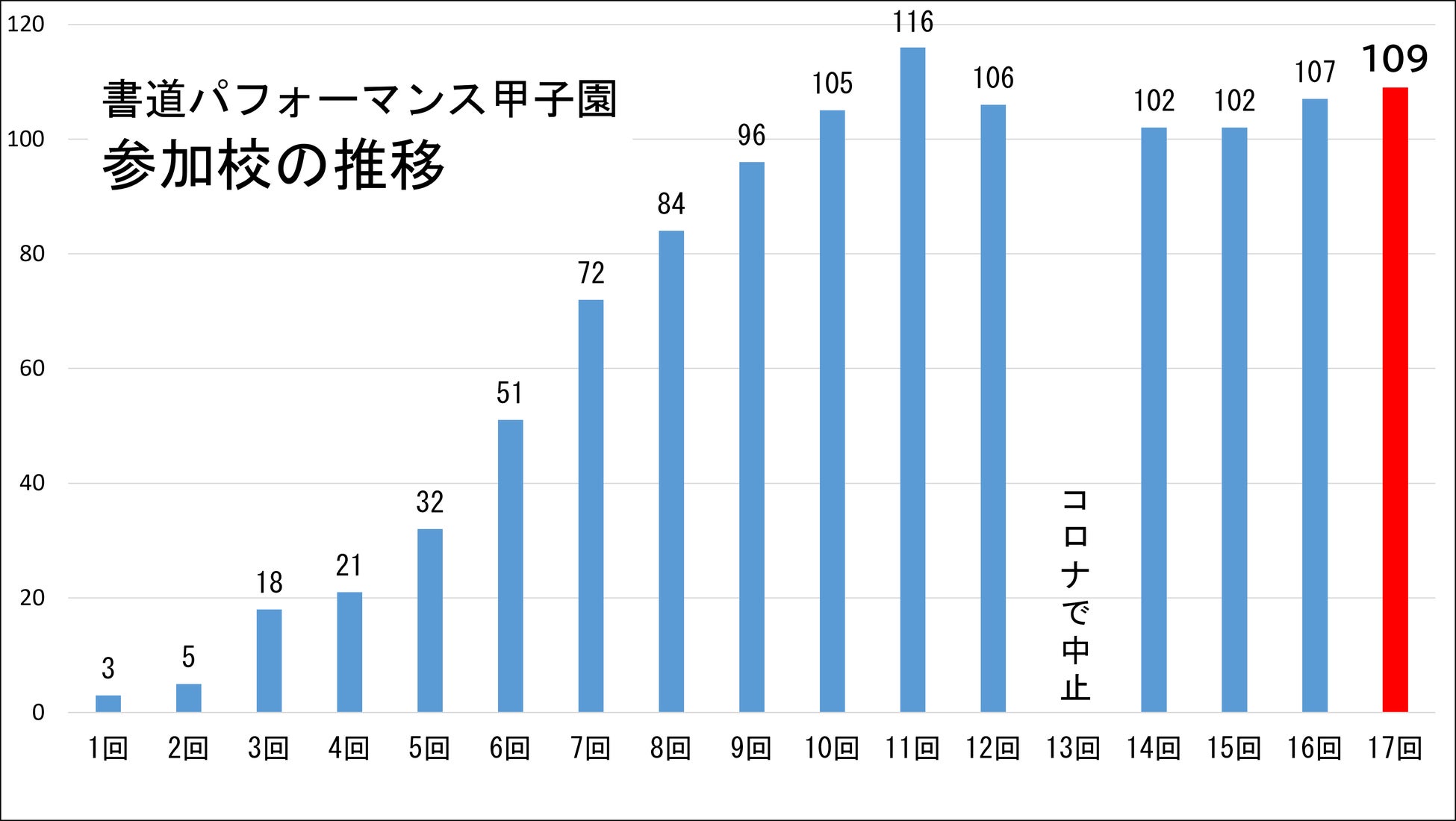 第17回全国高等学校書道パフォーマンス選手権大会(書道パフォーマンス甲子園)を主催する書道パフォーマンス甲子園実行委員会(所在地:愛媛県四国中央市、会長:篠原実)は、今大会の参加申込校数が全国32都府県の109校となったことを発表いたします。7月28日(日)に愛媛県四国中央市で開催予定の本戦に出場する21校については、6月14日(金)にYouTubeのオンライン生配信で発表いたします。