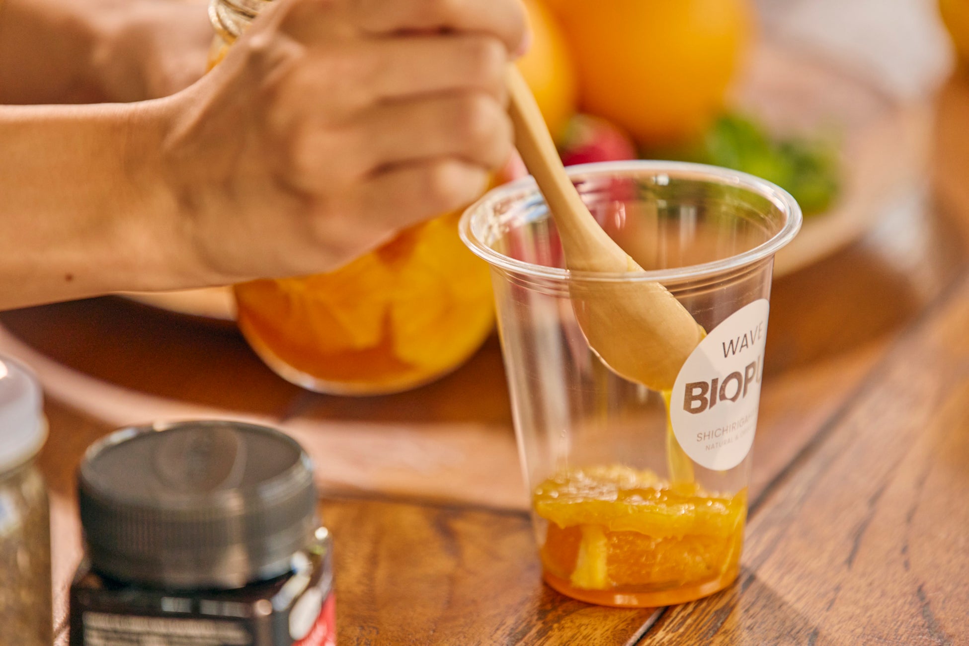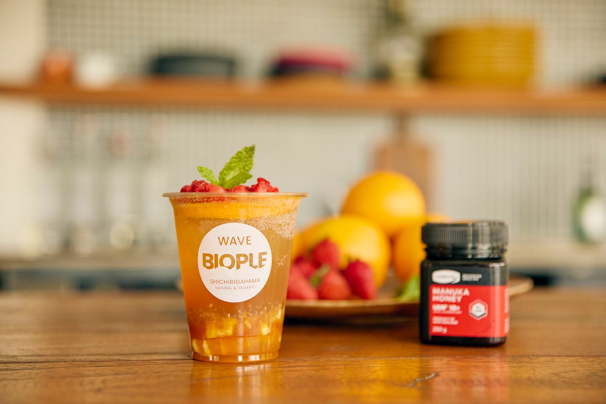 Biople七里ヶ浜店を期間限定ジャックする、Biople × COMVITA「Special Collaboration Month」実施記念として、伊原 葵さんによる、コンビタマヌカハニーを使用した、スペシャルコラボティーを開発。