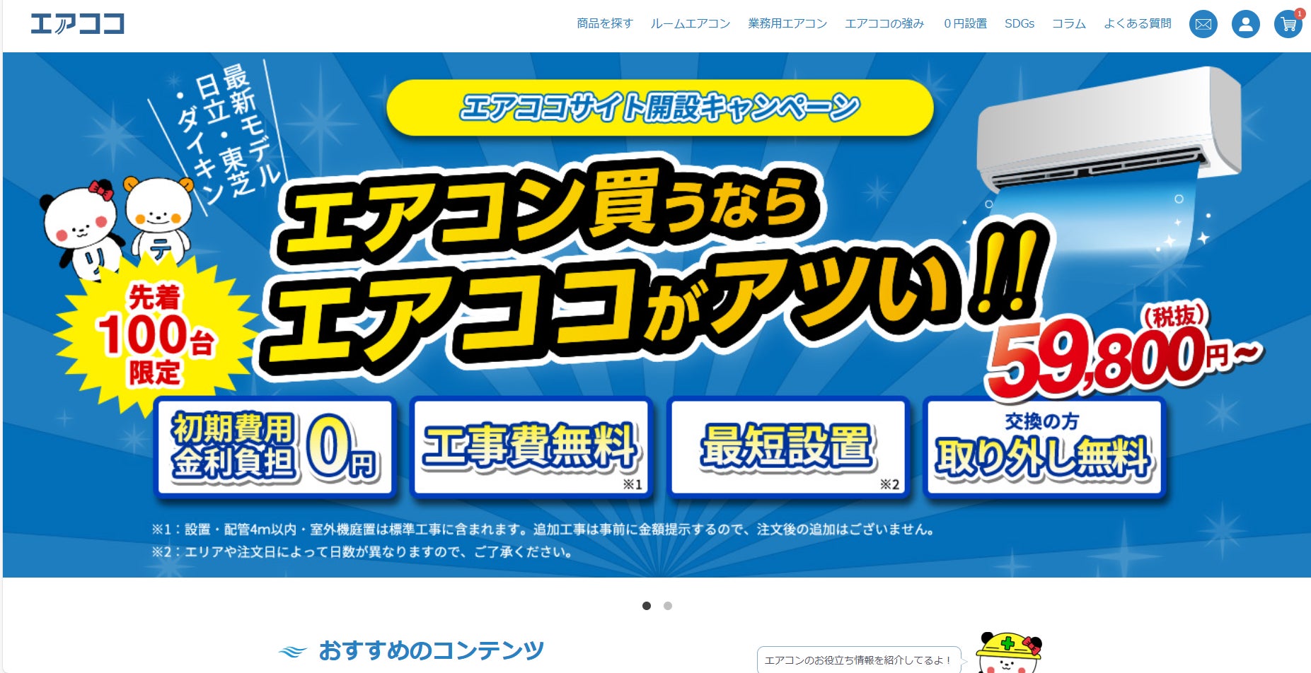 エアコン専門サイト「エアココ」のサービスを開始いたします。