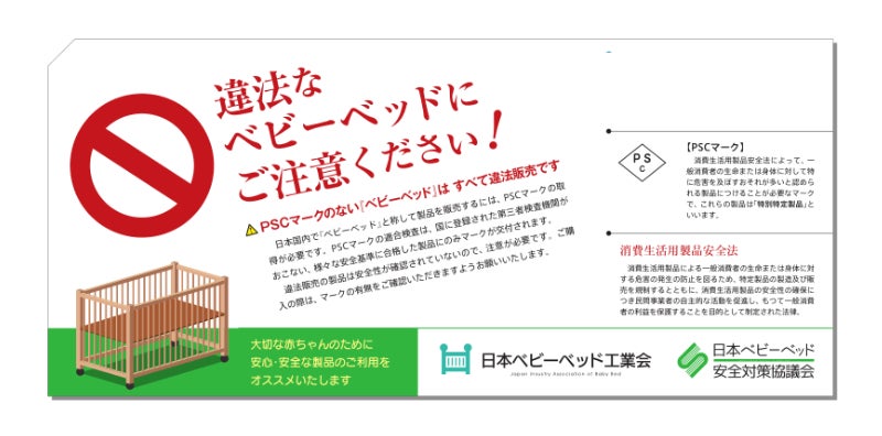昨今、日本国内において、PSCマークを取得していない海外製のベビーベッドの流通が確認されております。