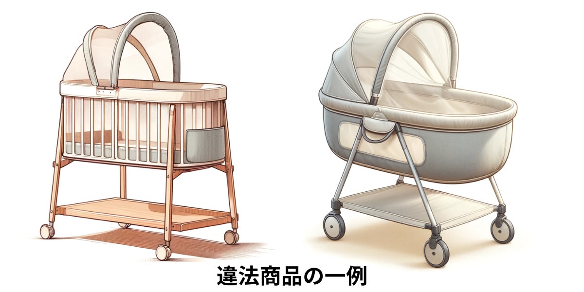 違法販売の製品は安全性が確認されていないので、赤ちゃんの乗り越え事故などのリスクが高く、またPSC新基準によって規制された、収納扉に首が挟まる危険性がある構造の製品も見受けられます。