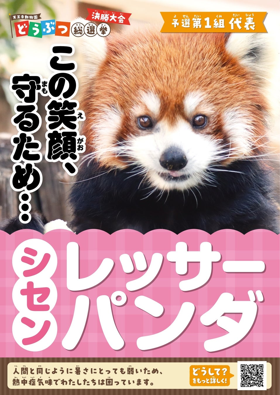 「シセンレッサーパンダ」、「ホッキョクグマ」、「野間馬」、「キバタン」の4候補。