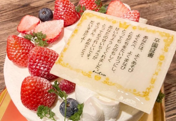 コロナ渦の中、卒業式に出席できない子供たちのために、卒業証書付ケーキがTVでも話題になり、1ヶ月で150個以上の注文が来るほど大ヒットしました。