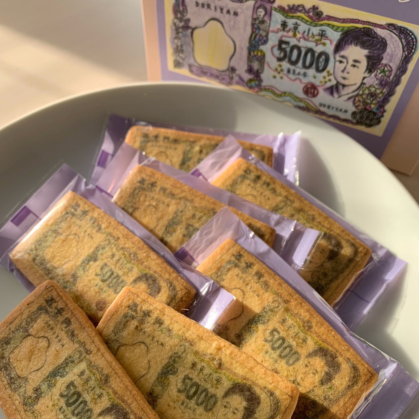津田梅子の新五千円札がデザインされているお札サブレを作成しました。ニュースでも紹介され、町おこしにも繋がり、ご好評を頂いております。