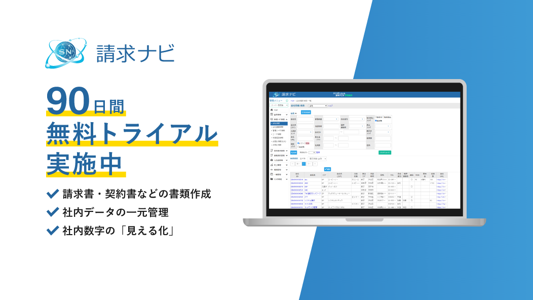 SES向け請求管理システム「請求ナビ」90日間無料トライアル実施中!