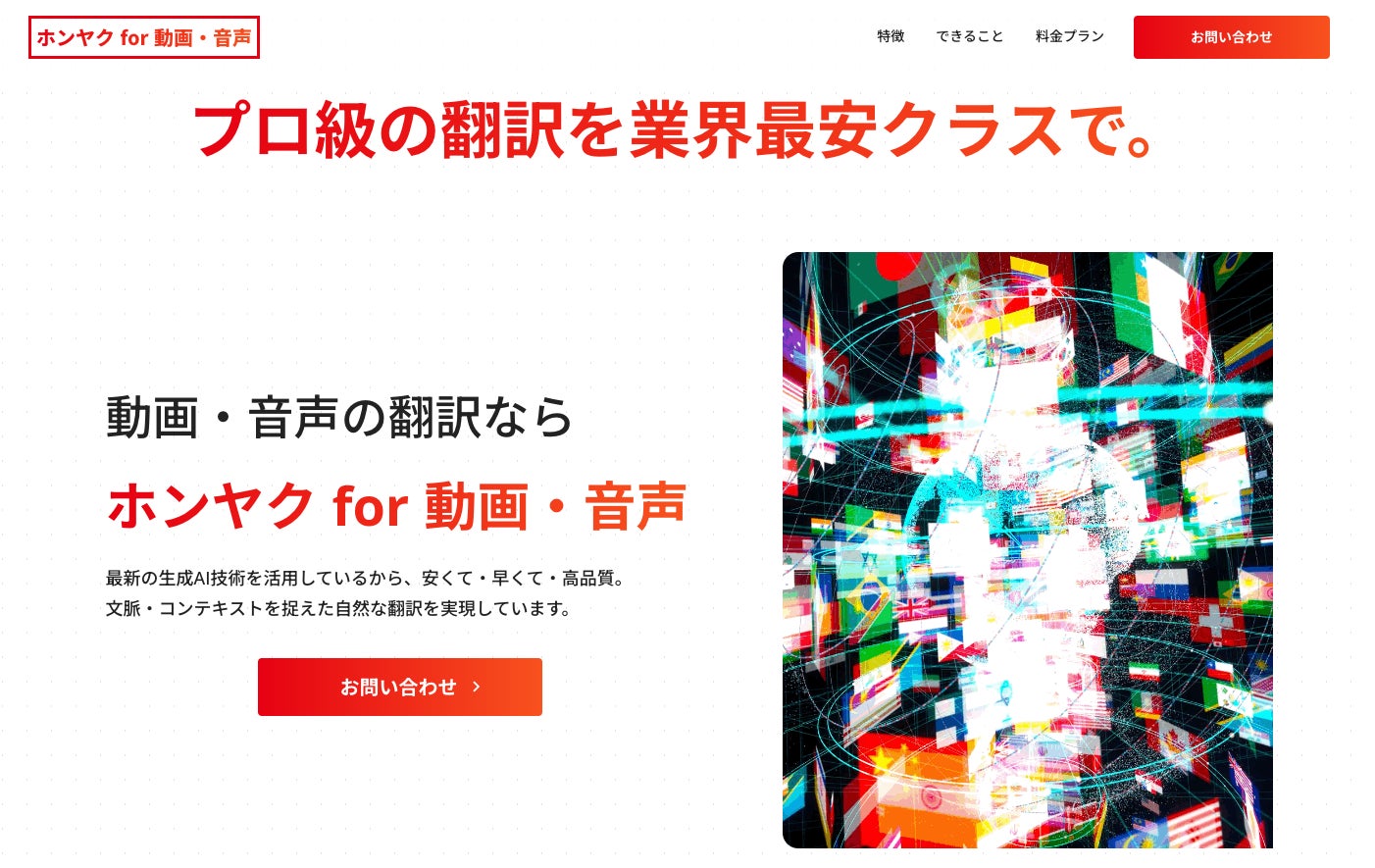 『ホンヤク for 動画・音声』サービスリリース。1分100円〜。業界最安クラスで、高品質かつ即日納品。