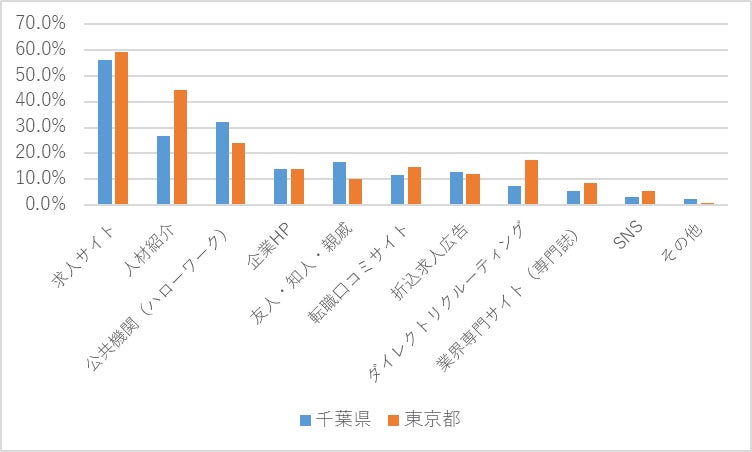 また、転職活動において、都内勤務者の方が多様な方法(人材紹介やダイレクトリクルーティング、口コミサイトなど)を活用する割合が高い傾向が表れています。このことから、現在都内で勤務している方を採用ターゲットとする場合には、人材紹介やダイレクトリクルーティングなど採用手法の検討も有効だと考えられます。