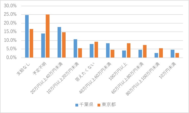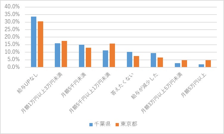 千葉勤務者と都内勤務者で、給与UPや夏のボーナス支給、リモート勤務の現状において大きな差があることがわかりました。都内企業の方が給与アップや賞与支給の余力があることも考えられますし、採用競争が激しいために、給与・待遇面の改善意欲が高いことも考えられます。