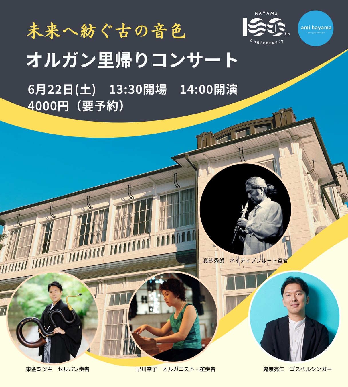 葉山町の町制施行100周年を記念し、株式会社amiは、「オルガン里帰りコンサート」を開催します。このイベントは、過去に、譲り受けた歴史あるオルガンをコンサート当日のみ旧東伏見宮葉山別邸へ里帰りさせ開催される1日限りの音楽会です。