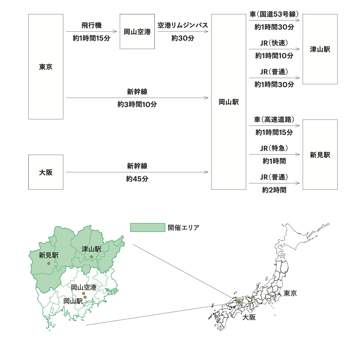 開催エリア:岡山県内の12市町村 (津山市、高梁市、新見市、真庭市、美作市、新庄村、鏡野町、勝央町、奈義町、西粟倉村、久米南町、美咲町)