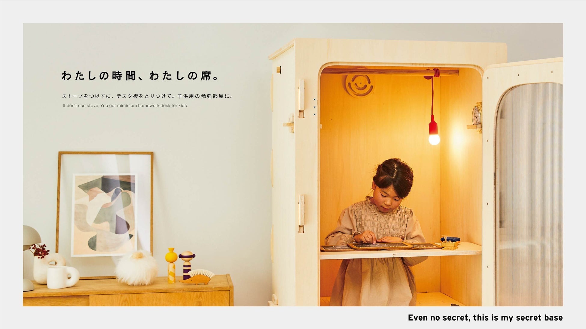 標準でついている木製バーは、サウナとして使わない時に洋服をかけて家族のクローゼットに。同じく標準で同梱されている簡易天板は、子供用勉強机に。それ以外にも照明をはじめとしたアクセサリーはご利用者の声を参考に、今後はユーザーの方々の声を参考にラインナップを拡充していきます。