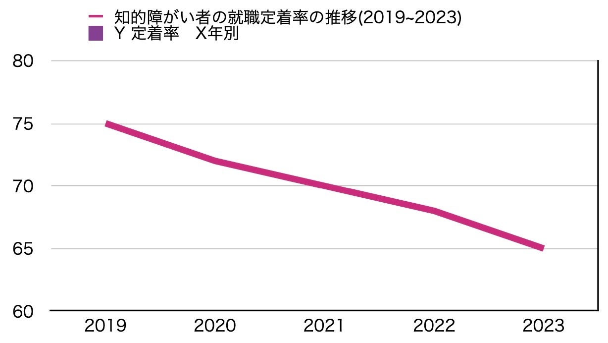 定着率の低下には、職場環境の整備不足や適切な支援体制の欠如が一因とされています。また、職場でのサポートが不十分であったり、仕事内容が適合しない場合、長期間の就業が難しい状況が生じることも影響しています。企業側の支援体制の充実や職場環境の改善が求められています。