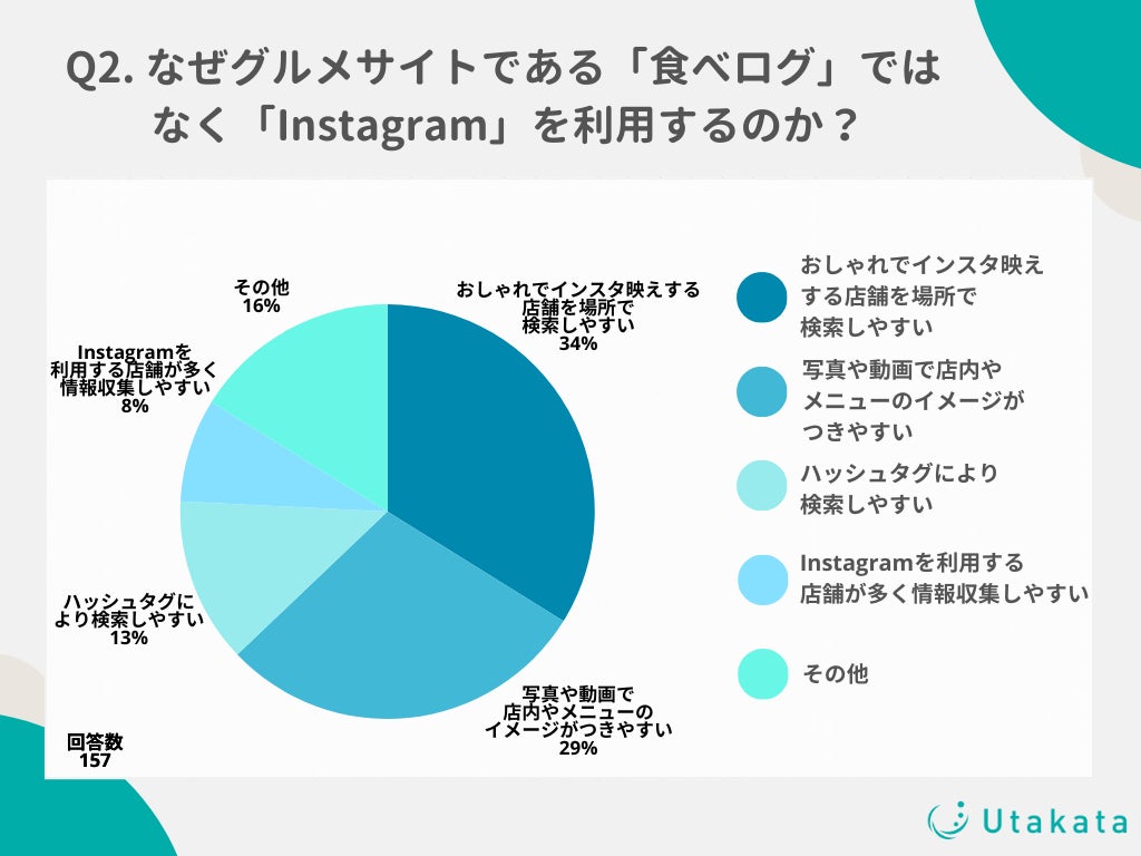 ・メニューや実際の料理の写真を見ることができることに加え、飲食店を利用する際に写真映えするかどうかの判断基準になるから。