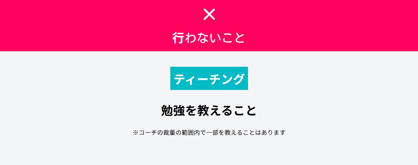 つきっきりで教える個別指導や家庭教師とは違い、時間単価ではない伴走の形をとることによって、ほかの習い事とも併用可能なリーズナブルな価格でサービスをご提供します。