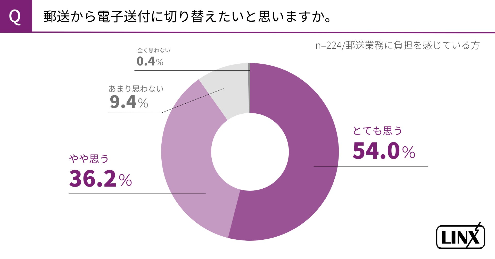 郵送業務に負担を感じている人の約9割が、電子送付への切り替えを希望