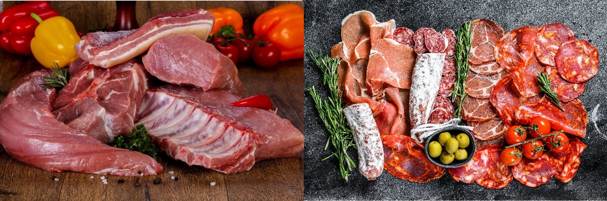 例えば、スペインポークが誇る、世界3 大生ハムの一つ硬化調理したハモンセラーノは、伝統的な加工製品でスペインの美食に欠かせない代表食材です。さらに生ハム、チョリソ、ロモ、フエなど、他の加工製品の豊かな味わいもスペインポークならではの特徴です。