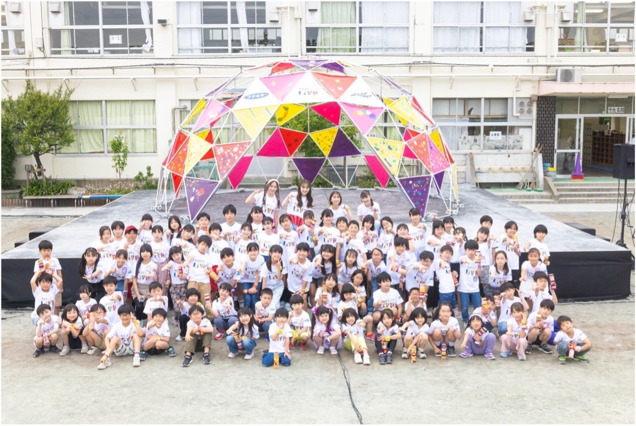 2025年5月、都内の小学校にてももいろクローバーZと81名の子どもたちが参加したイベント「ももフマ工作&LIVE」を実施しました。そこでは、子どもたちがももいろクローバーZの4人と竹の楽器を手作りしたり、ビニールドームを作ったり、みんなで作った楽器で生演奏ライブをしたり、1日を通して外で元気に遊ぶことの楽しさを体験しました。