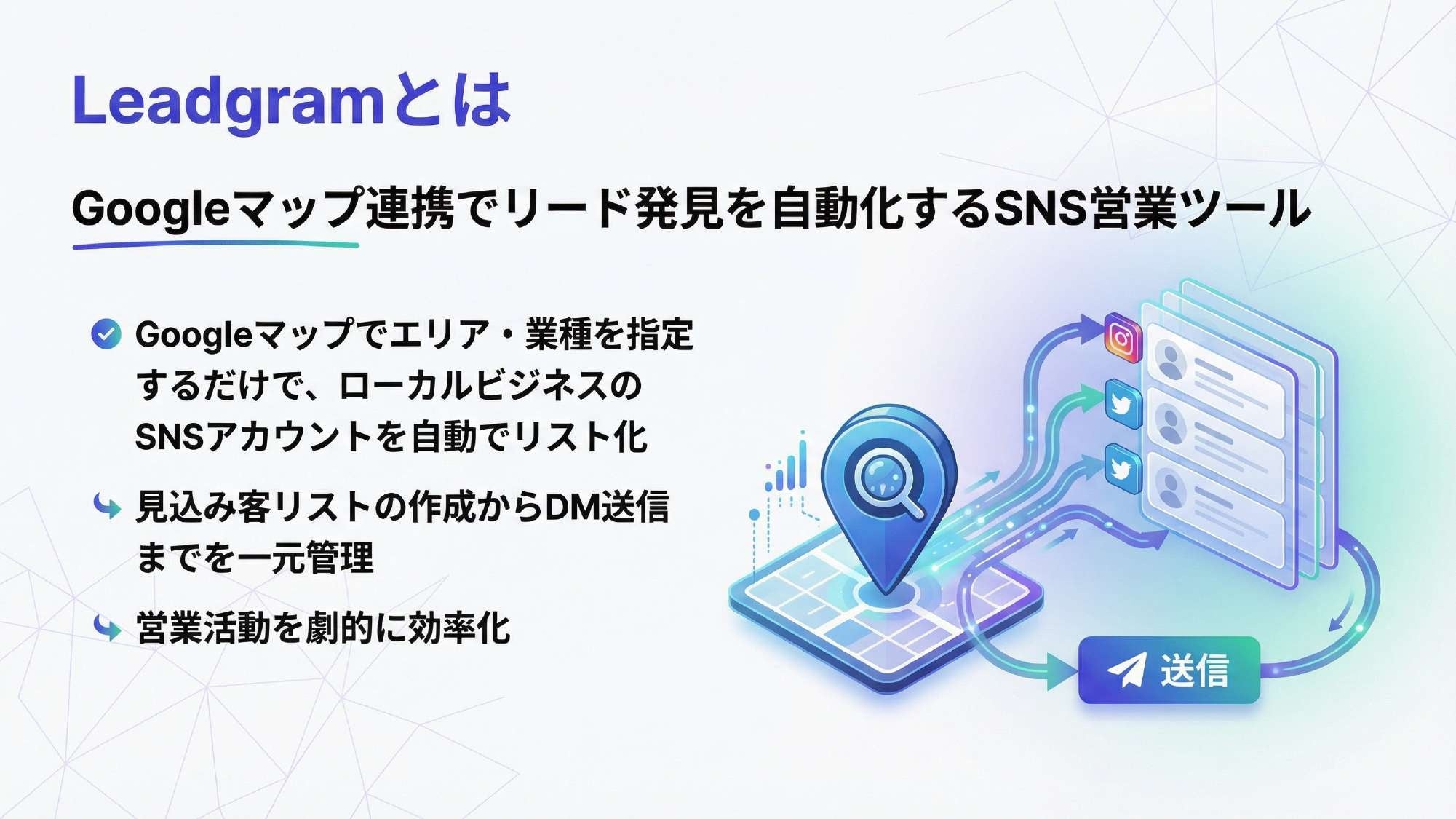 リスト作成時間を90%削減!Googleマップ×SNS営業を支援する「Leadgram」提供開始。見込み客抽出からDM送信までをワンストップで支援