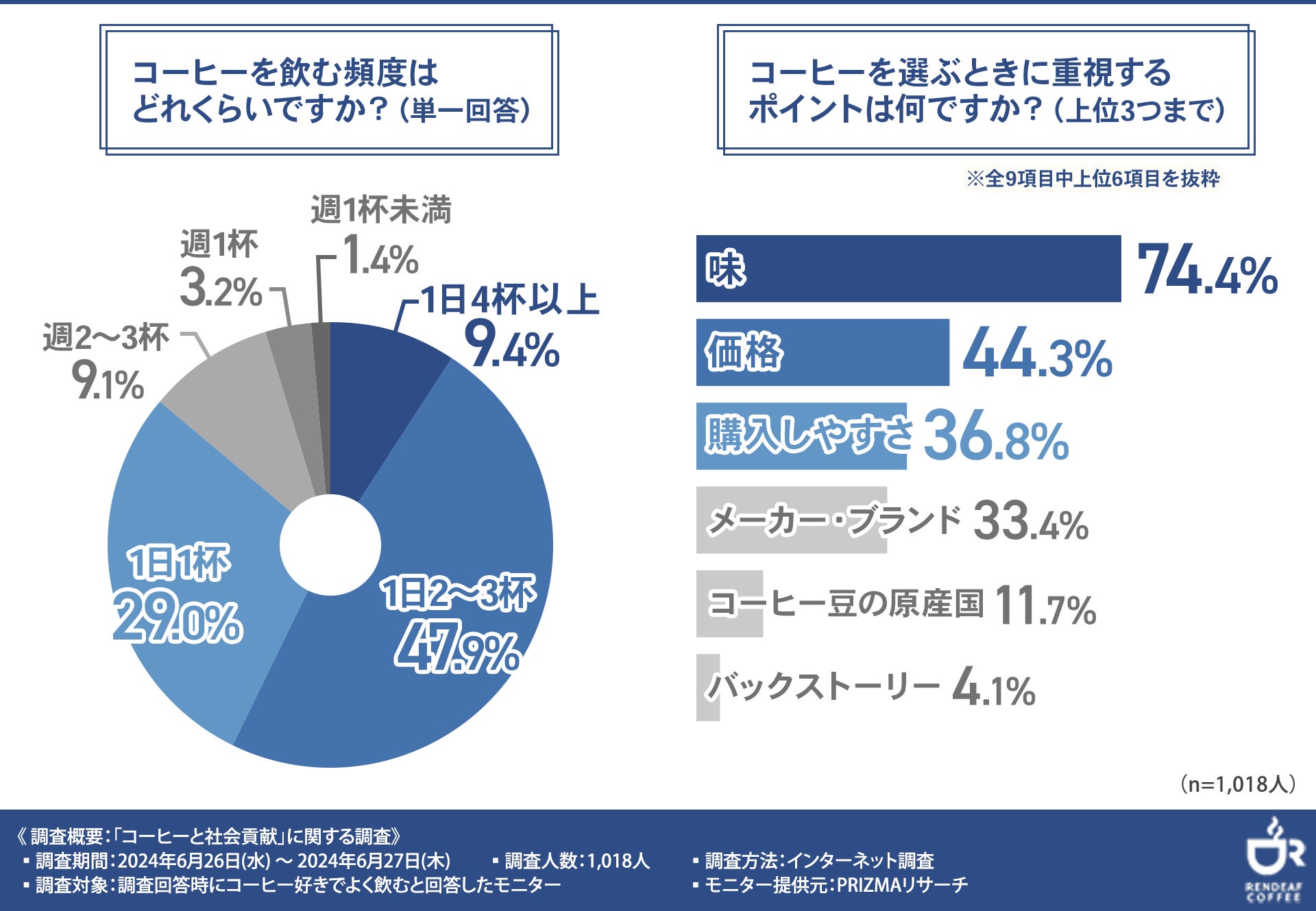 コーヒーを飲む頻度や選ぶ際に重視するポイントなどが明らかになりました。