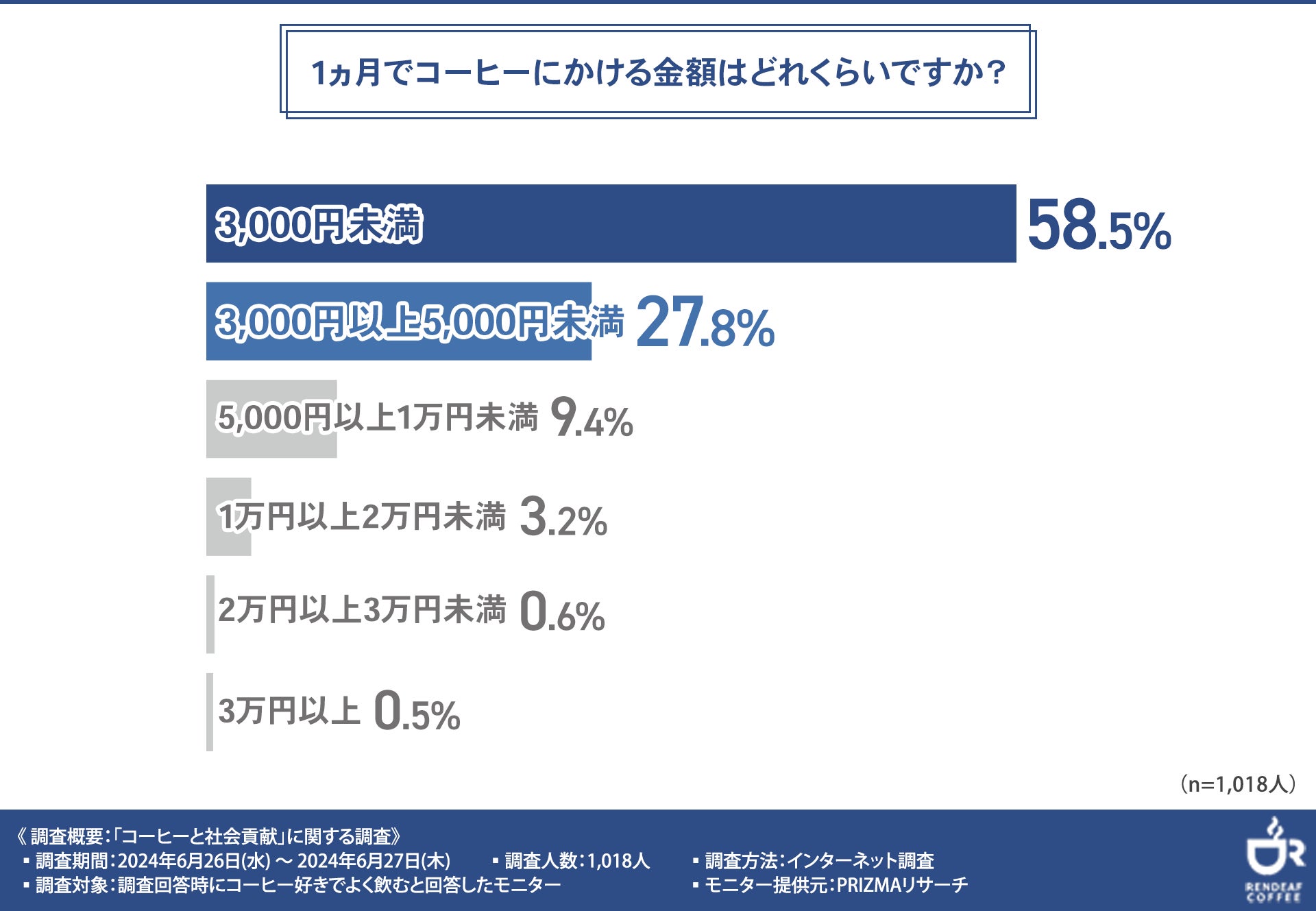 1ヶ月にコーヒーにかける金額は3,000円未満が約6割