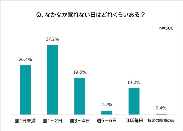 また「ほぼ毎日」と答えた人も14.2%いて、睡眠に深刻な悩みを抱えている人も多いことが伺えます。
