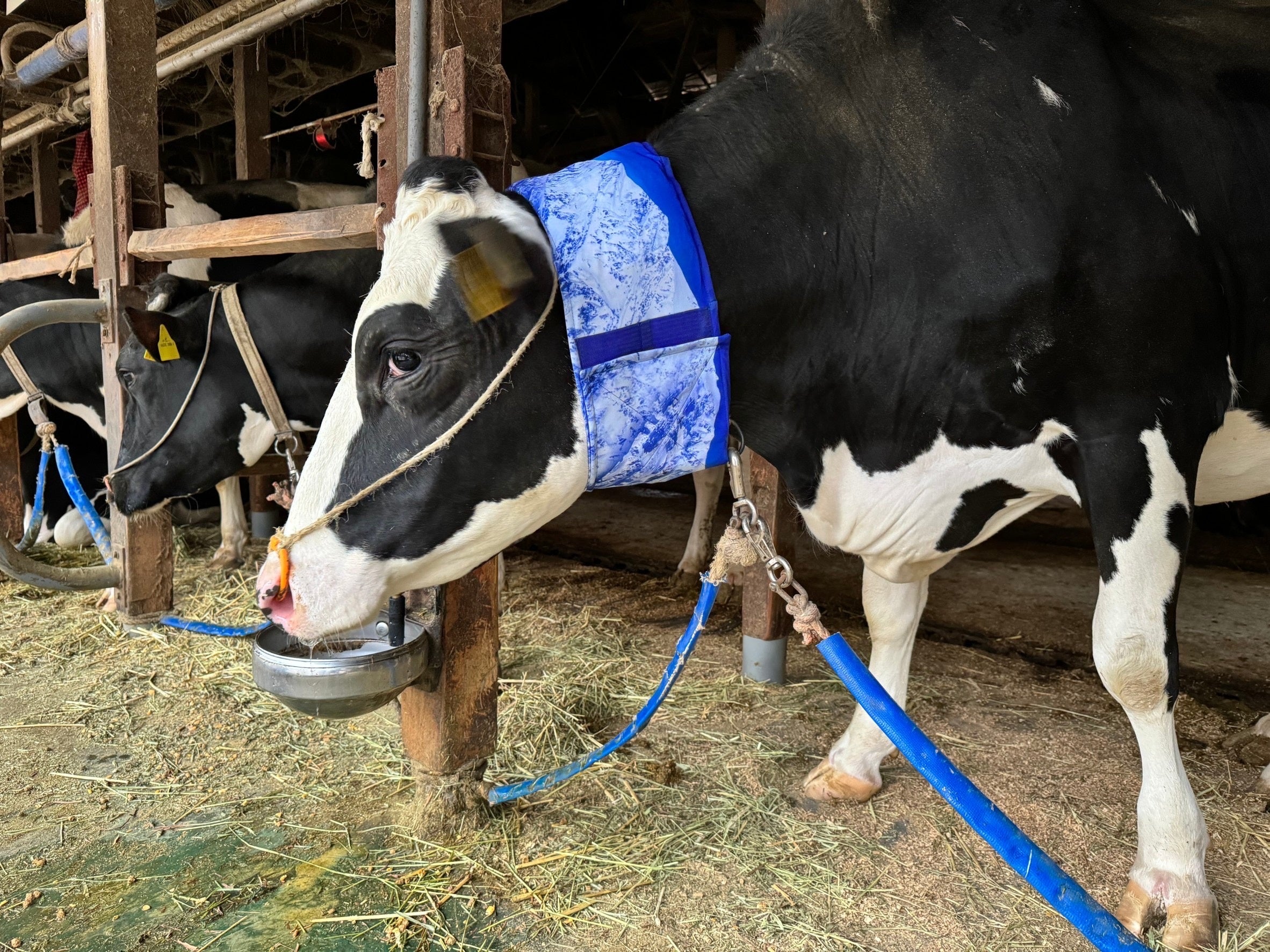 【USIMO】牛の熱中症対策に!NEW接触冷感ネッククーラー、保水がハイブリッド仕様になって、6/19島根中央家畜市場に登場