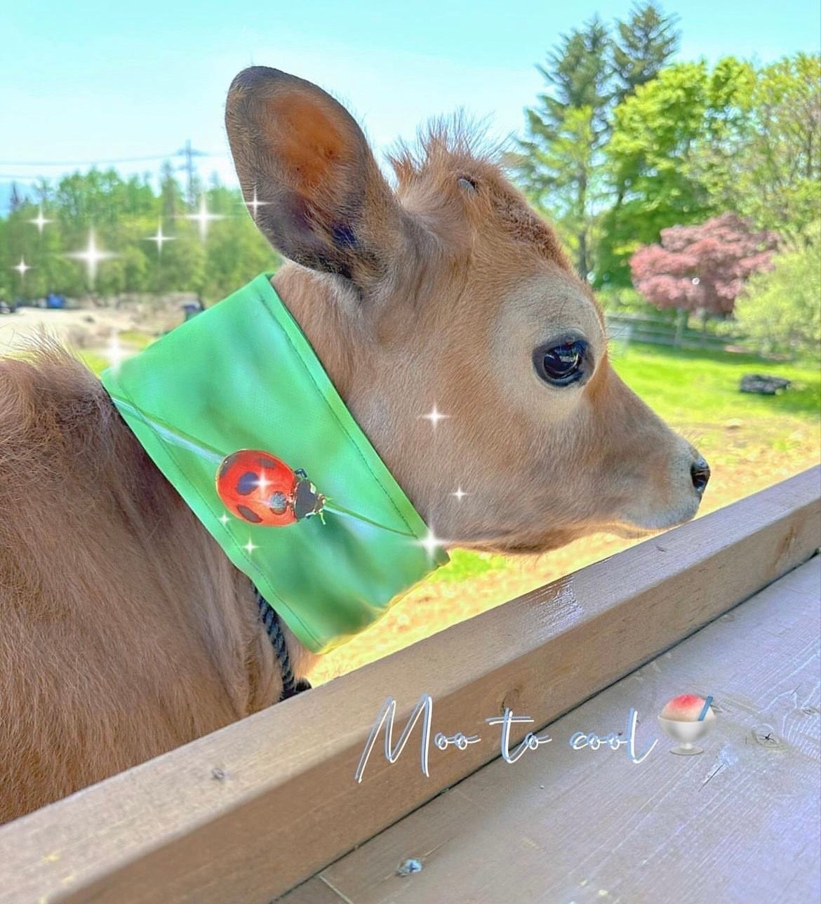 【商品ページ】「牛用」の接触冷感ネッククーラー「USIMO 接触冷感‼モーっとクール」 https://usimo.jp/cool.html (こちらのページからもお買い求めいただけます。)