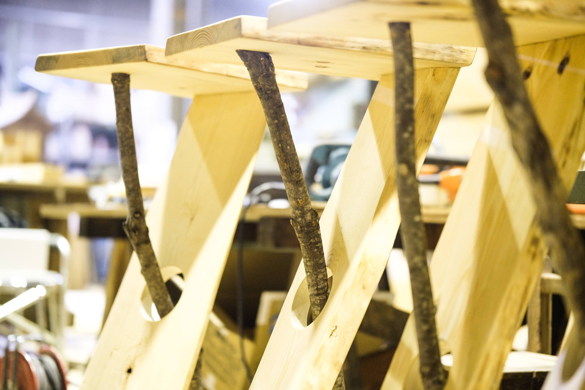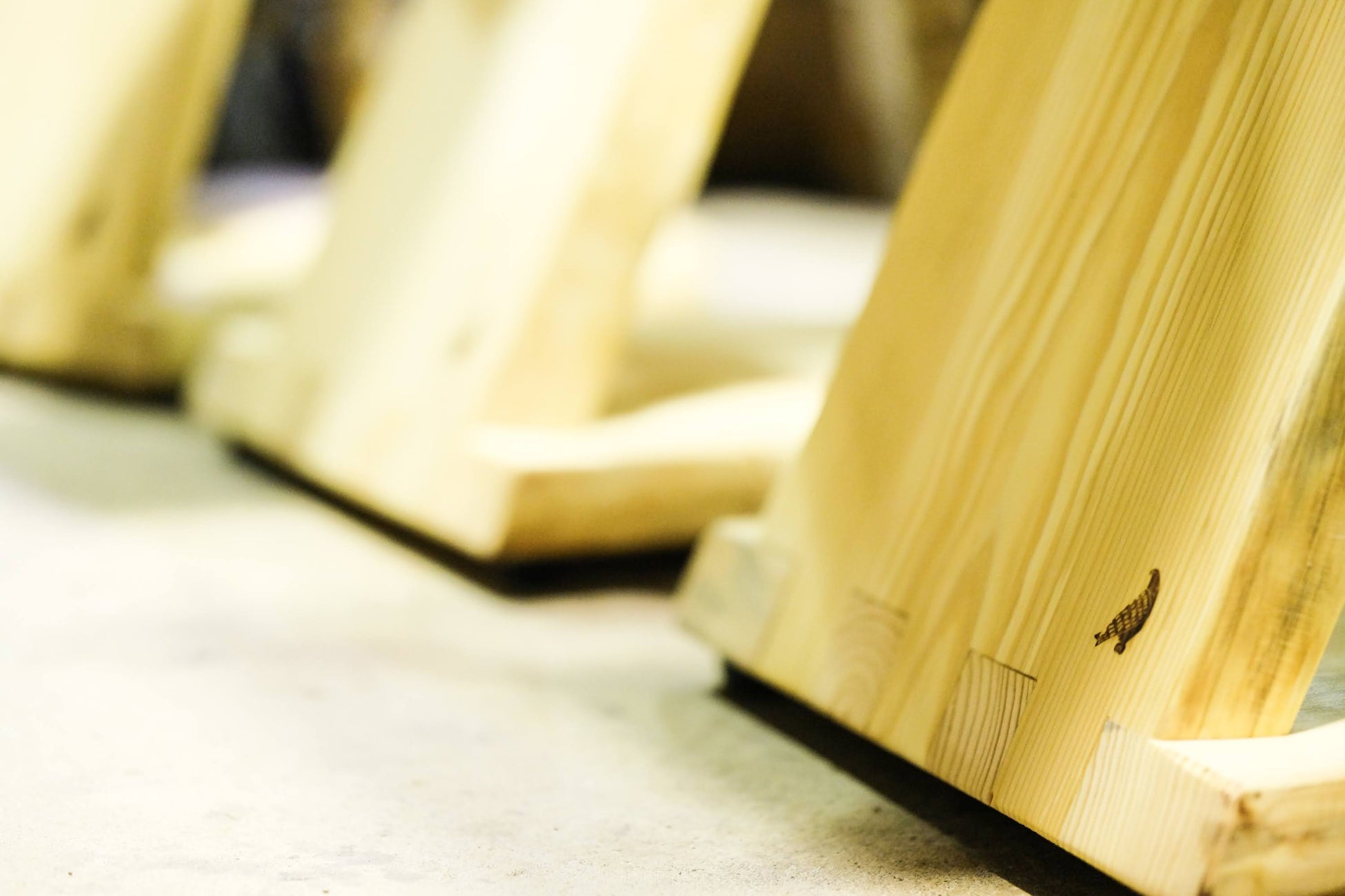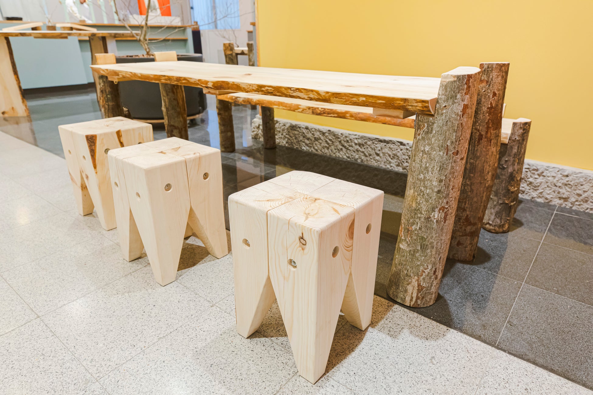 plowerでは、従来の事業拠点でも(DOAIVILLAGE、さなざわ㞢テラス)、日本自然保護協会との連携でイヌワシ木材を活用してきましたが、昨年開業したイヌワシストアでは、イヌワシ木材を店内什器に使用すると共に、同木材のブランディングを進め、建築材料としてだけでなく、オリジナル家具としても販売を進めています。