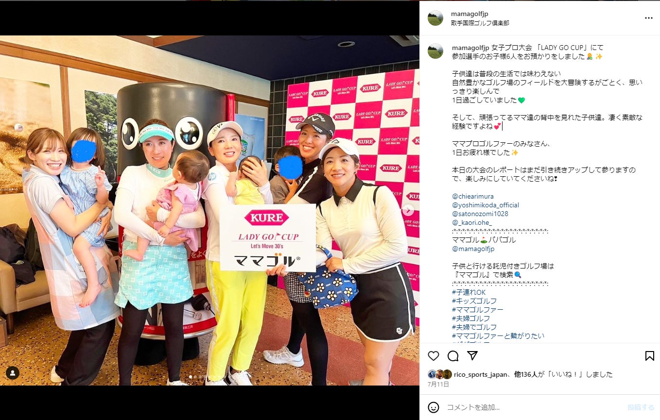 【女子プロ選手のお子様をお預かり!】ゴルフ場託児「ママゴル」が8/10『エイジェック LADY GO カップ in とちぎ』に帯同!