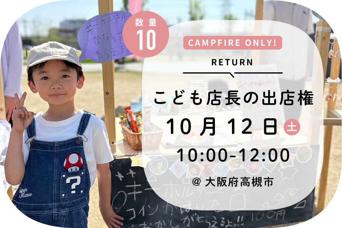 2024年10月12日(土)、13日(日)の2日間ともに10時~12時、14時~16時の計4部制のいずれかに、こども店長として出店できるリターンです。