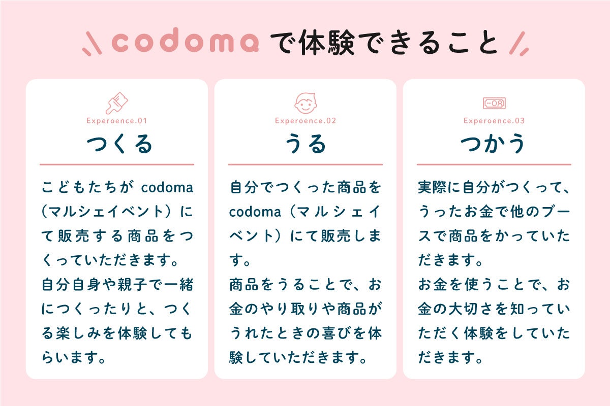 「codoma」では、こども店長自らが商品を作って売り、リアルなお金を稼いで使うことを通して、体験型マネー教育を提供しています。