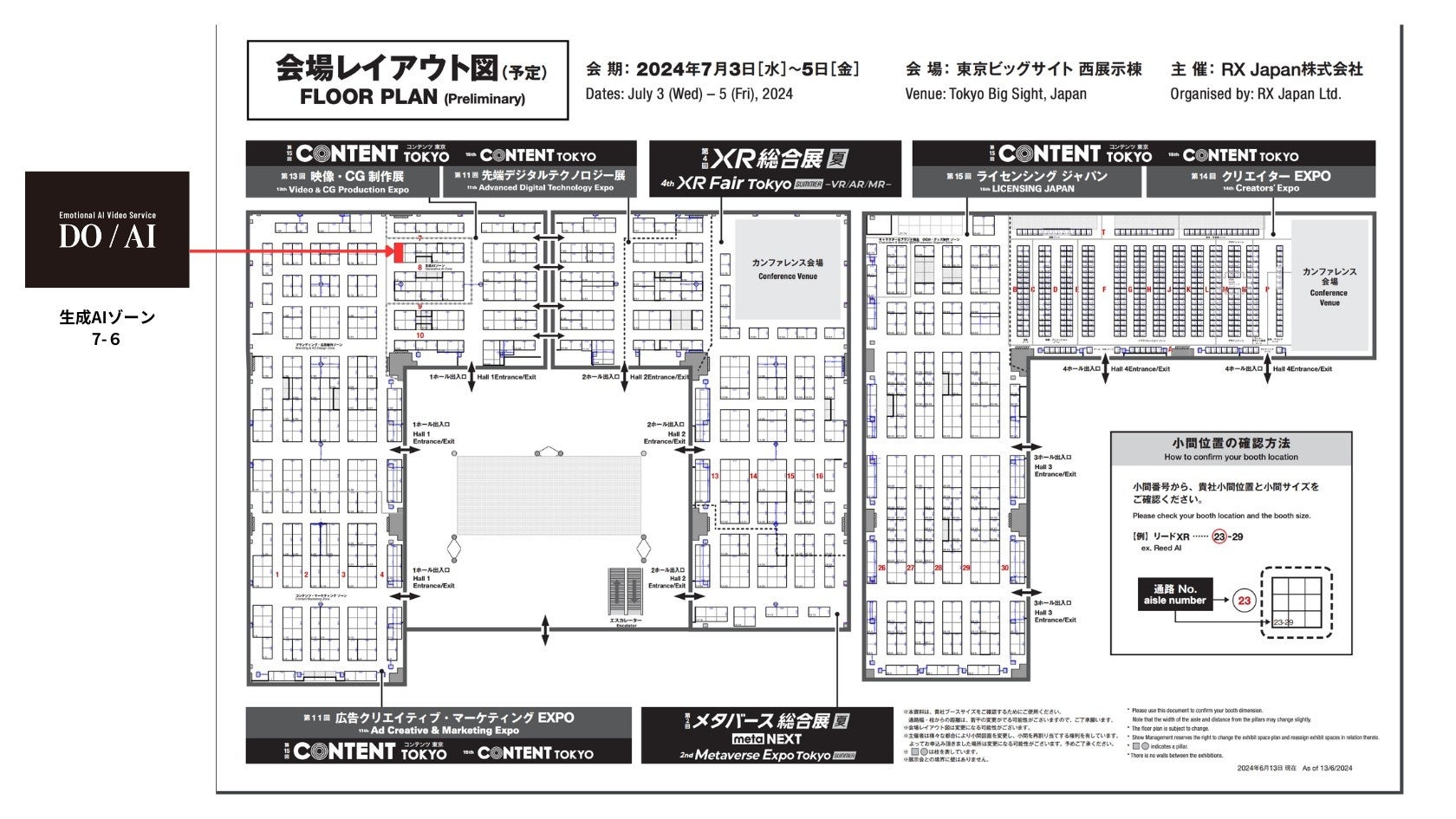 サービスのローンチに合わせ、7月3日〜5日に東京ビックサイトで行われるコンテンツ東京に出展し、当社が制作したコンテンツの上映、サービス概要の紹介等を行います。DO/AIでは、『AIを楽しもう』をテーマに、クリエイターと生成AIクリエイターの掛け合わせで制作する新しい動画エンターテイメントを提供し、ワクワクする動画のコミュニケーションを世界に展開してまいります。