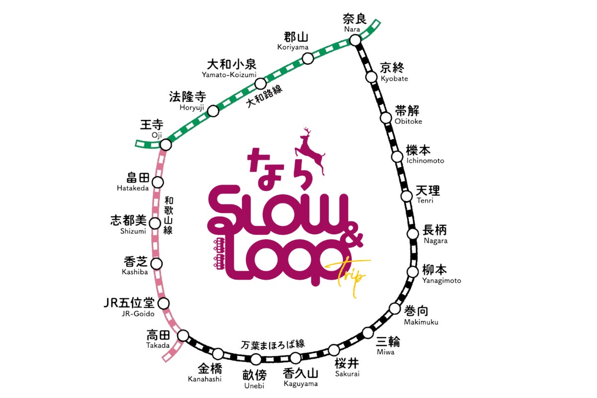 県内を走るJR西日本の路線「万葉まほろば線(桜井線)」 ・「和歌山線」・「大和路線 (関西本線)」が環状構造になっていることに着目し、電車を活用した宿泊・周遊観光を促進する取り組みです。京都・大阪には無い不便さを交えた「奈良らしさ」を楽しんでいただきたいと考え、「ゆったり」、「より深く」、「より広く」県内の魅力ある地域を巡っていただきたいという思いから名付けました。