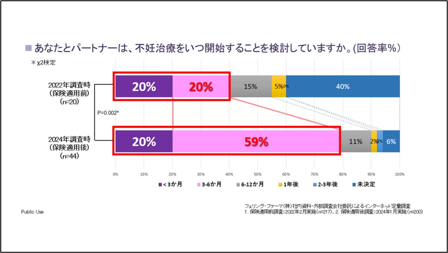 不妊治療の保険適用後、不妊カップルの挙児希望率は向上 保険適用により不妊カップルの挙児希望の思いはより強まり、初回受診後においても積極的に治療開始に進む傾向がみられた。
