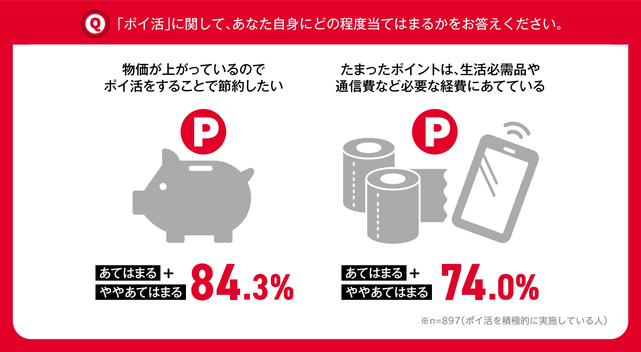 さらに、「物価が上がっているので、ポイ活をすることで節約したいと思うか」という質問は84.3%が