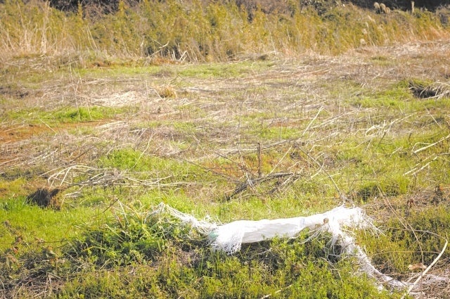 ②耕さずにばら撒いた傾斜地 (2か月半ほど経過)