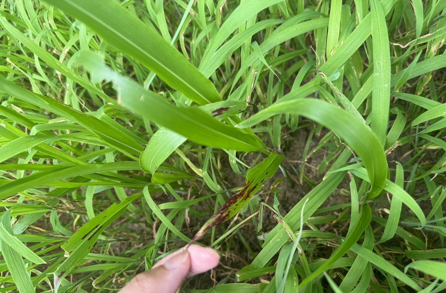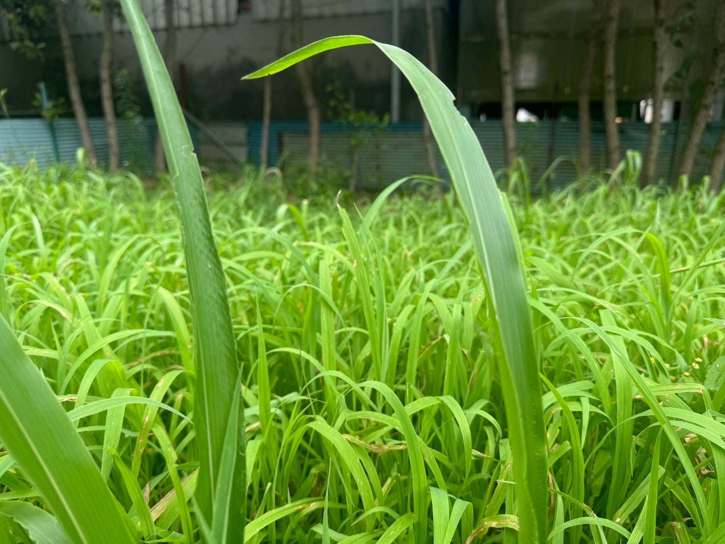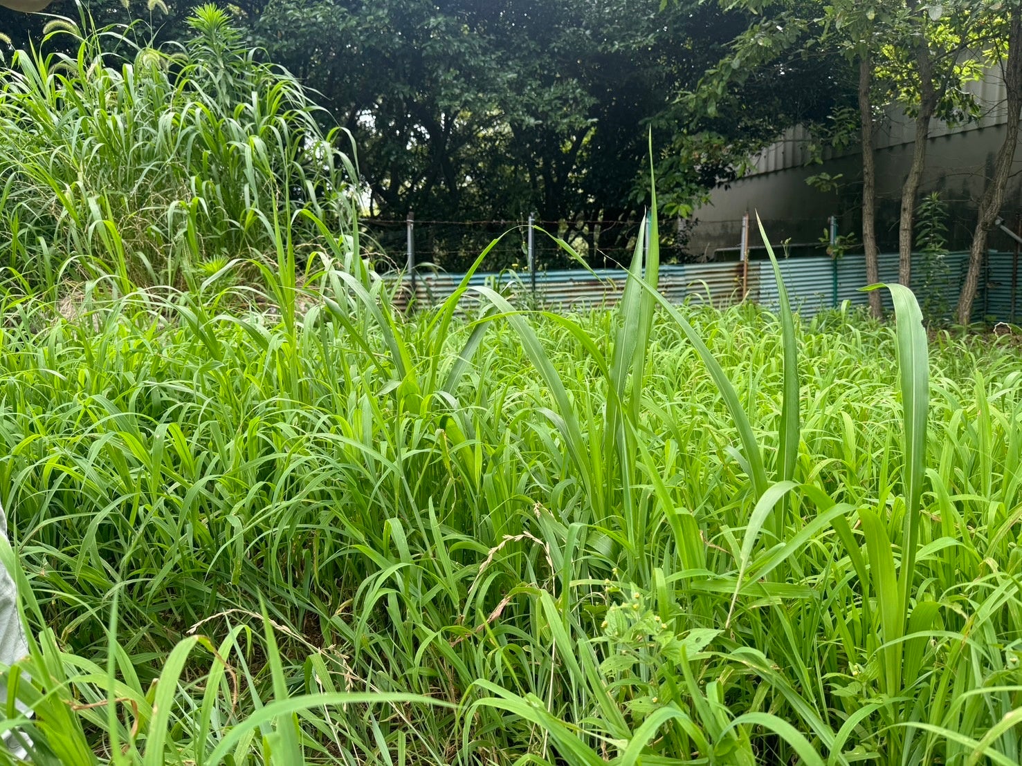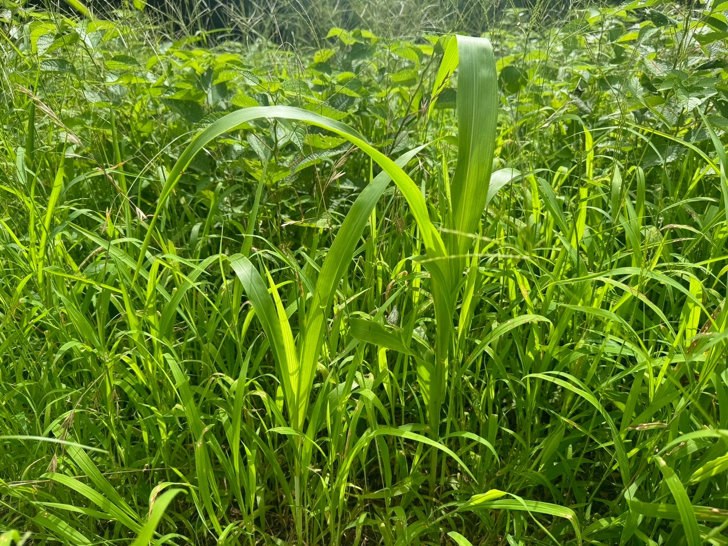 他の雑草よりも背丈が大きく、60~80cmほどに成長しました。イネ科の植物でありながら、雑草に紛れず茎部分が太く真っすぐに伸びています。しかし、葉部分が害虫被害にあっているものと、暑さの影響か、葉の先端が枯れているものが見つかりました。
