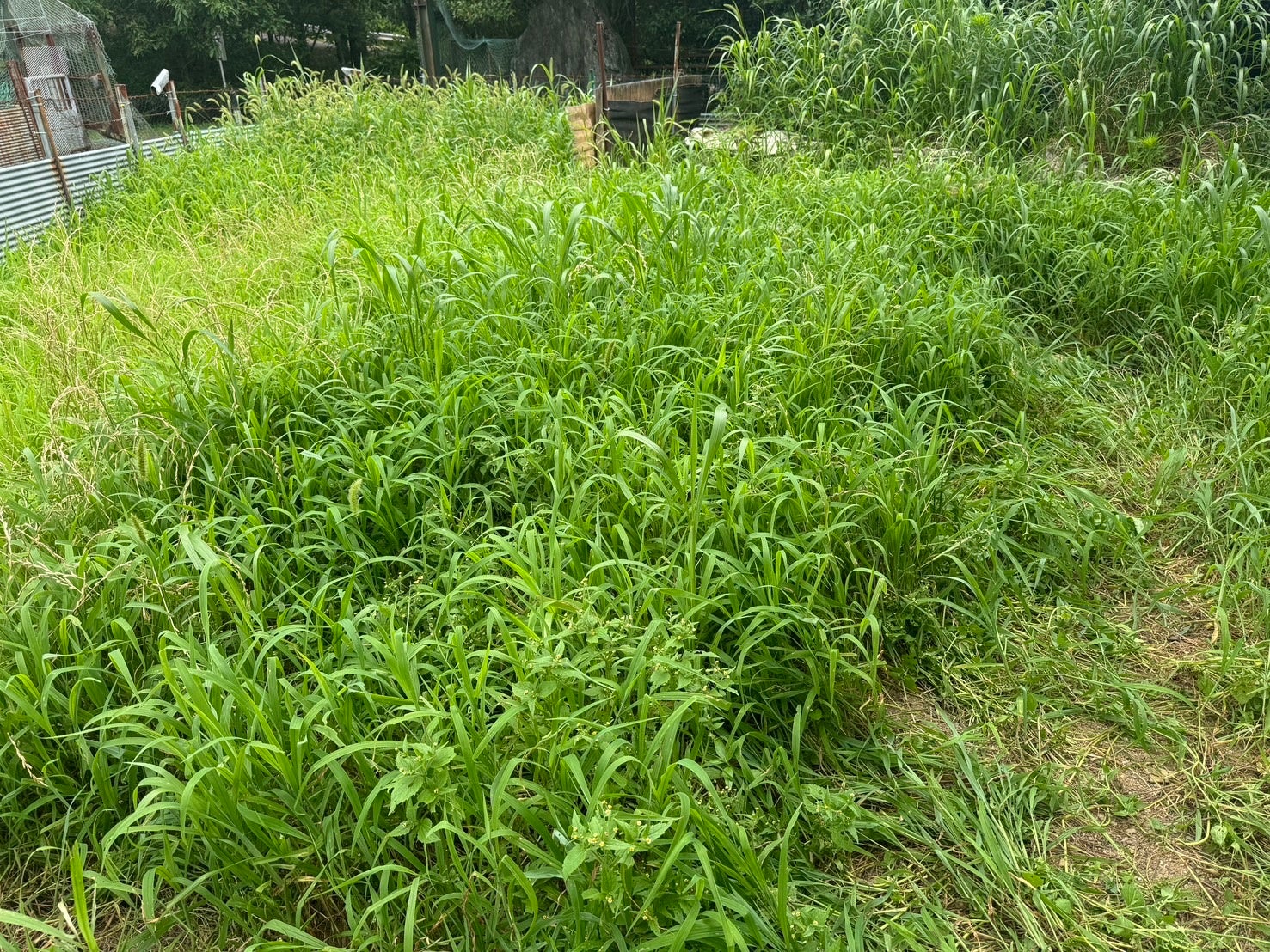 ②のソルガムは①のように害虫被害はなかったものの、周囲の雑草は害虫被害を受けていました。
